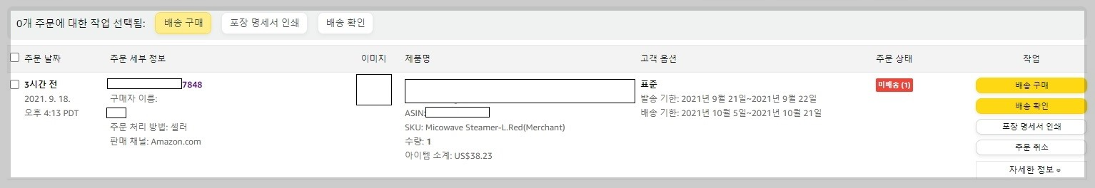 그럼, 아마존 MFN(FBM)으로 주문이 들어왔을 때 프로세스를 보겠습니다.