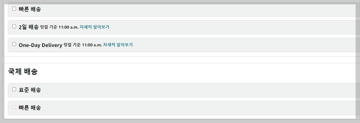 배송 유형에는 표준 배송 Standard와 빠른 배송 Expedited로 나눌 수 있습니다.