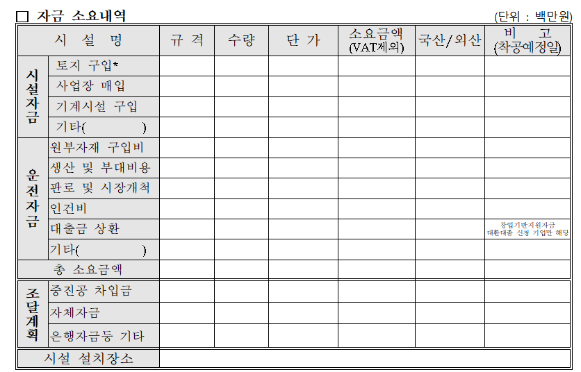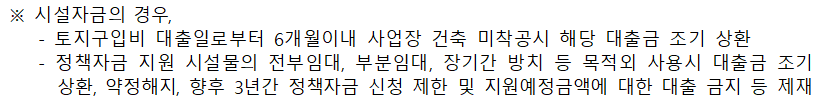 운전자금과 다르게 시설자금의 경우에는 위와 같이 조건이 붙습니다.