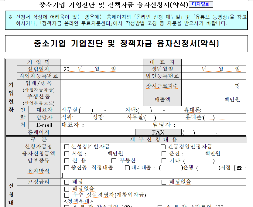 융자신청서는 정책자금 신청시 모든 정보를 입력해서 제출해야 하는 중요한 서류입니다. 이 파일 안에는 사업계획서 작성하는 공간도 있습니다. 2년 전, 저 역시도 계획과 목표 등을 적었던 기억이 납니다. 물론, 자세하고 정확하며 체계적이어야 합니다.