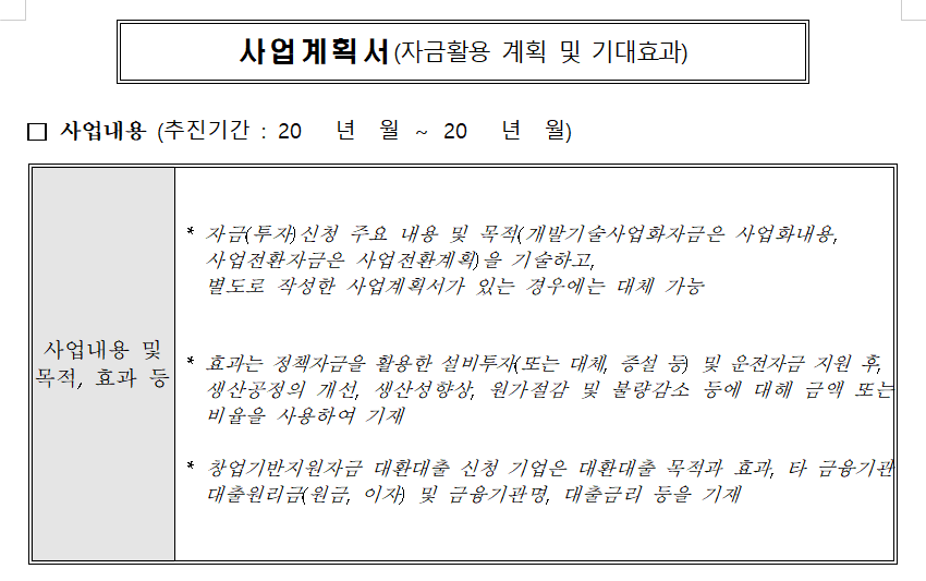우리는 바로 사업계획서 적는 곳을 보겠습니다.