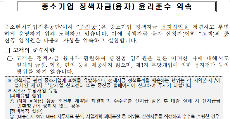 끝으로 중소기업 정책자금(융자) 윤리준수 약속에 서명을 하면 마무리가 됩니다. 저는 경기도신용보증재단이 집에서 멀지 않아서 직접 방문을 했고 집으로 오시기도 했었네요.