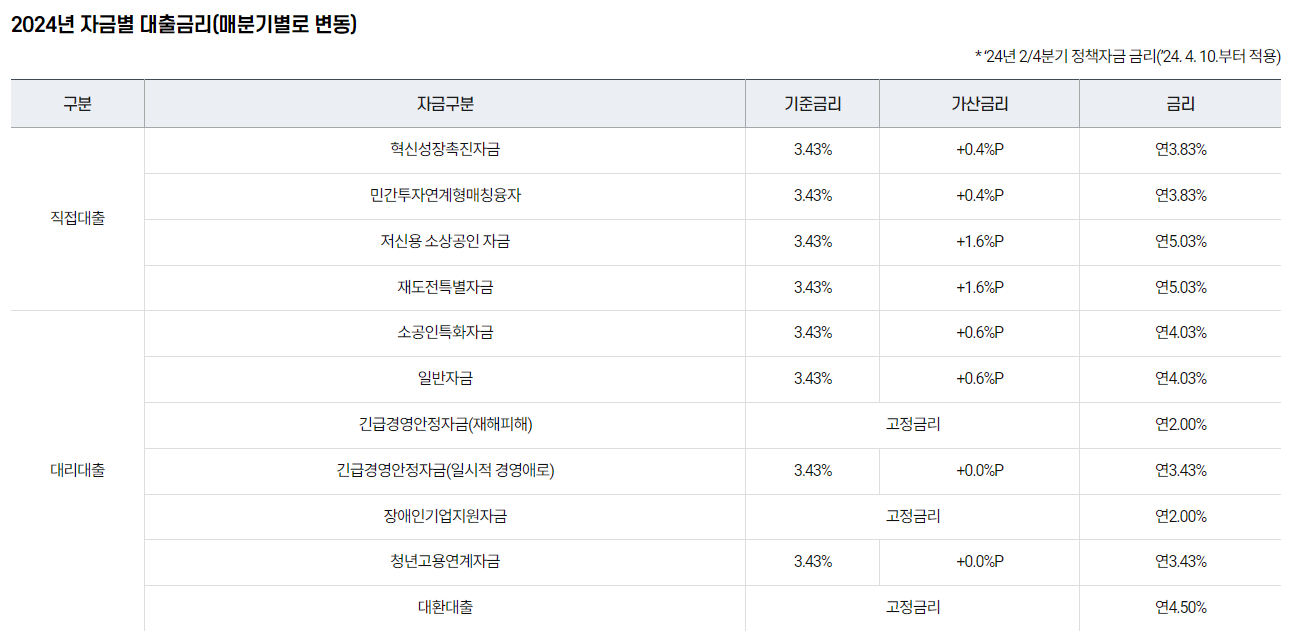 • 대출금리(변동금리) : 정책자금 기준금리 + 0.4%p (예상 금리 알아보기↗︎)