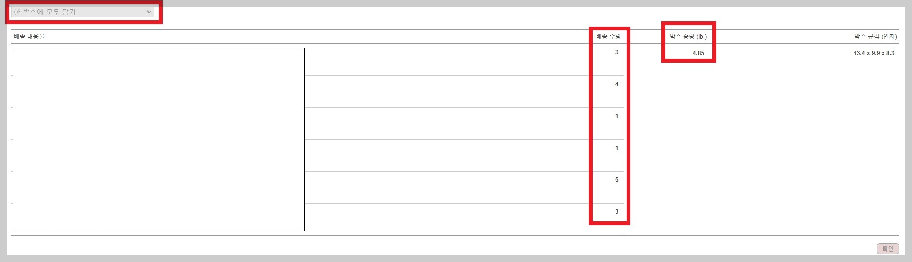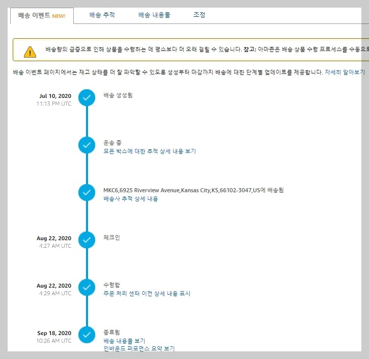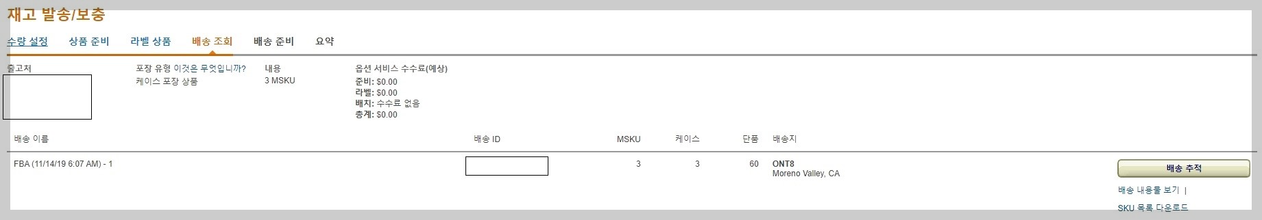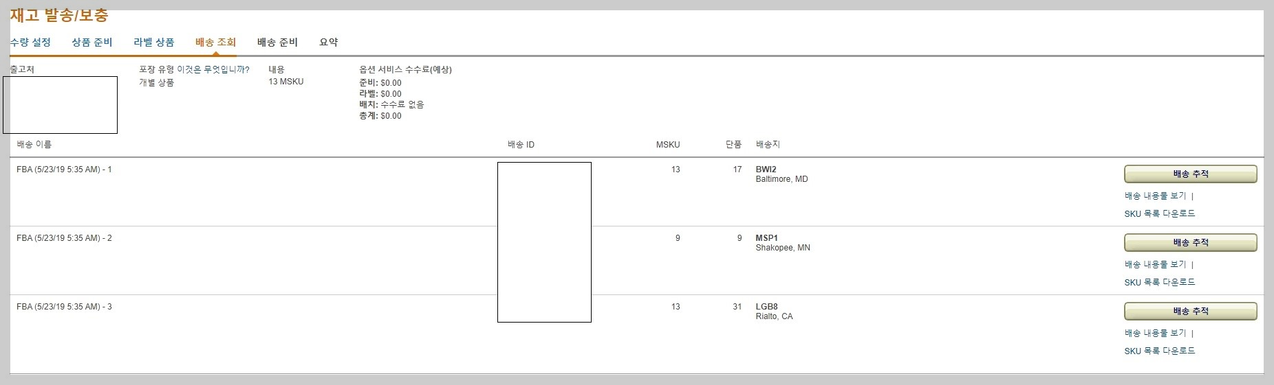 3개의 아마존 창고로 나눠졌고 기타 배송사를 이용하여 입고시켰습니다.