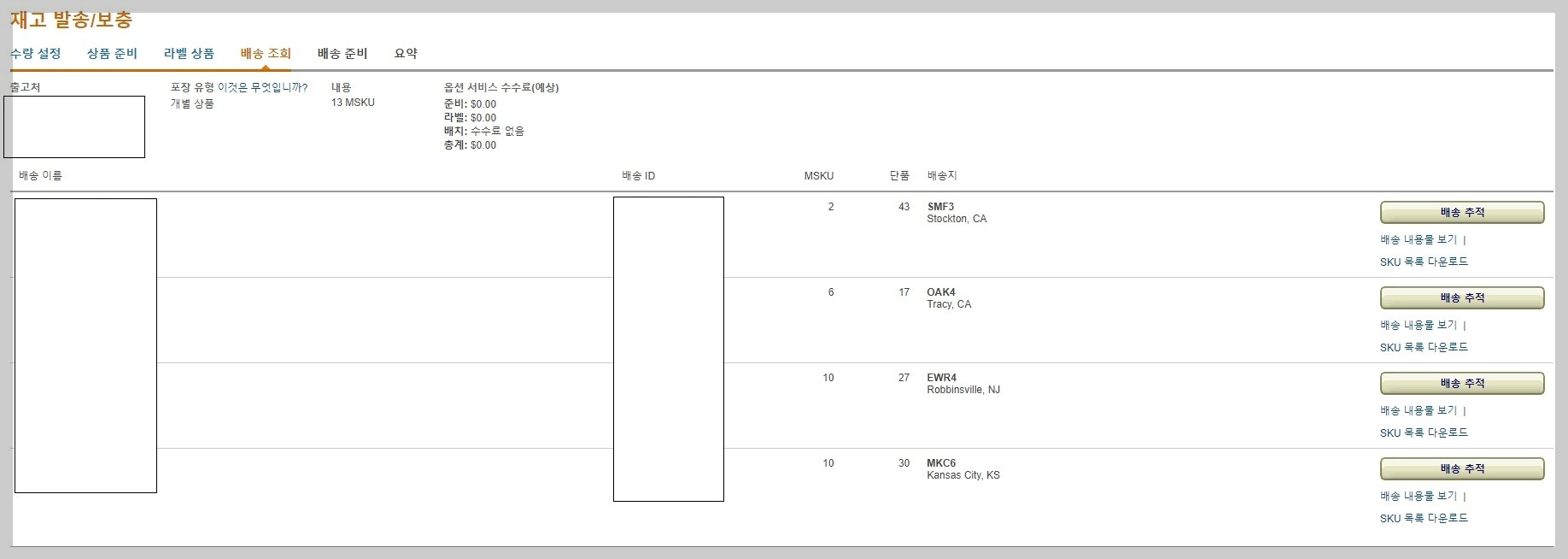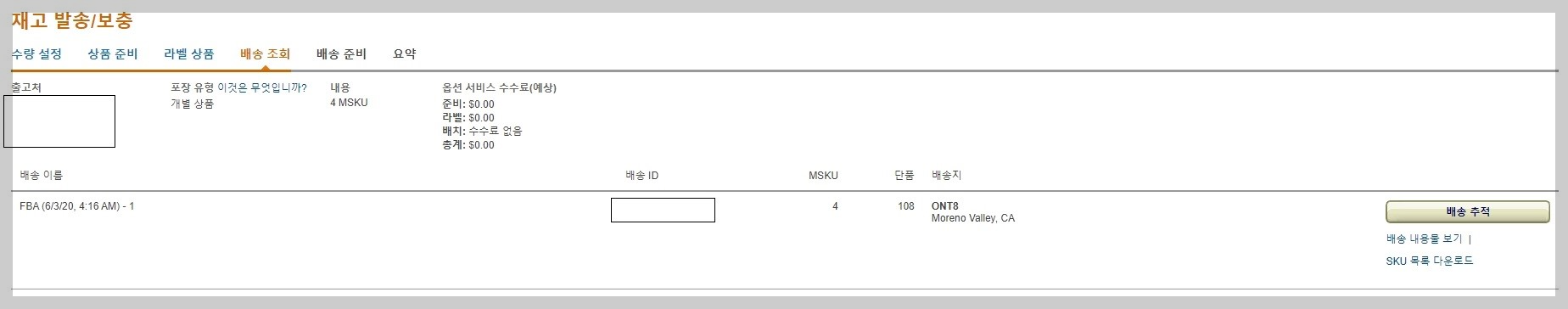 4개의 아마존 창고로 나눠졌고 아마존 협력 배송사 UPS를 이용하여 입고시켰습니다.