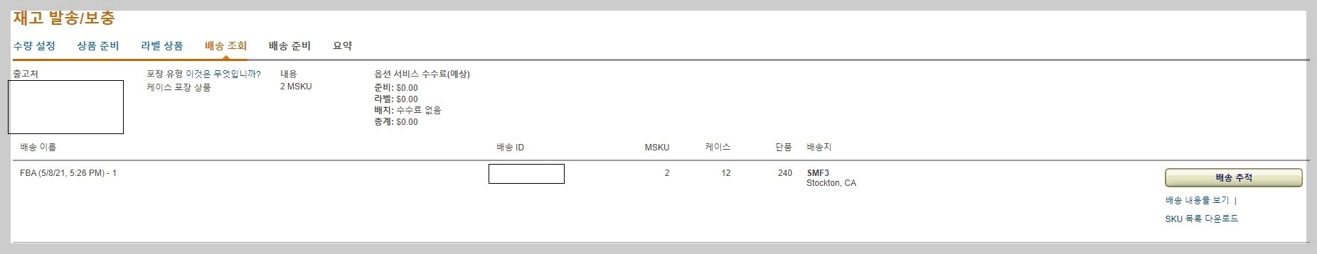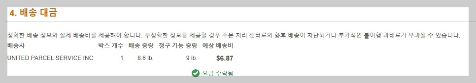 1개의 아마존 창고로 정해졌고 아마존 협력 배송사 UPS를 이용하여 입고시켰습니다.