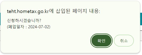 첨부서류도 저는 없었기에 화면 하단에 있는 신청하기 버튼을 클릭하면 아래 이미지 팝업이 화면에 나타납니다.