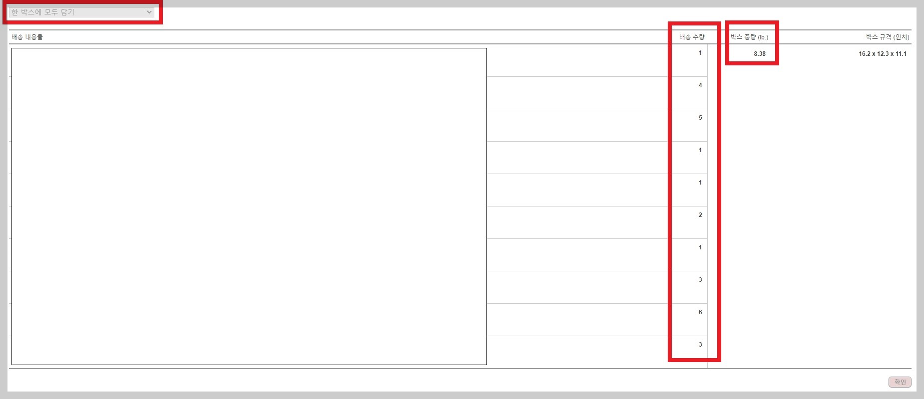 3개의 아마존 창고로 나눠졌고 기타 배송사를 이용하여 입고시켰습니다.